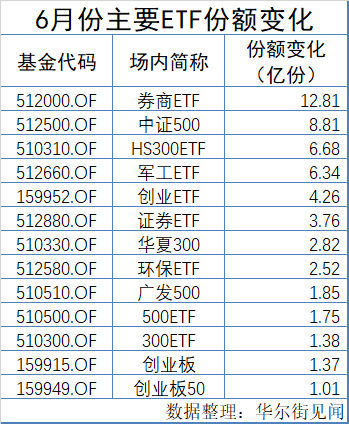另据东方财富Choice数据,从ETF份额变化明细来看,华安创业板50ETF,易方达创业板ETF,华泰柏瑞沪深300ETF,南方中证500ETF最受投资者青睐。