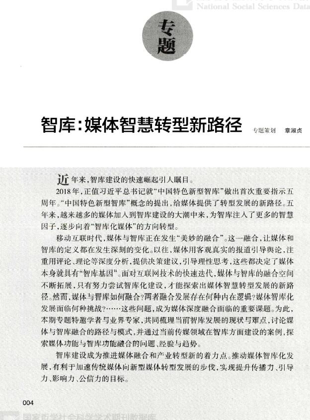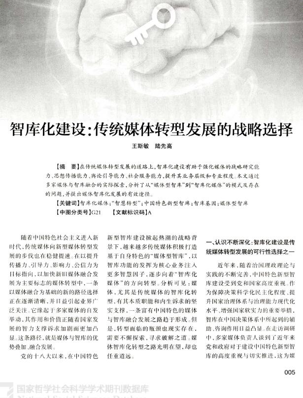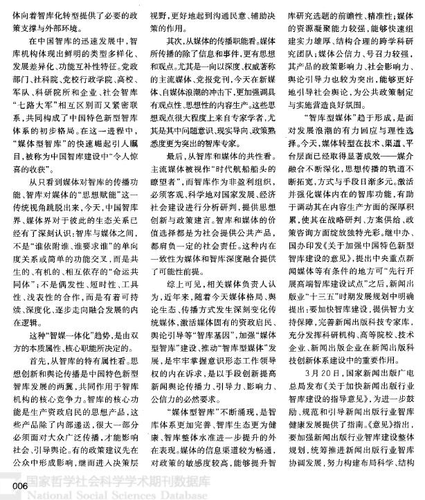 【关键词】智库化媒体 “智慧转型” 中国特色新型智库 智库基因 媒体型智库