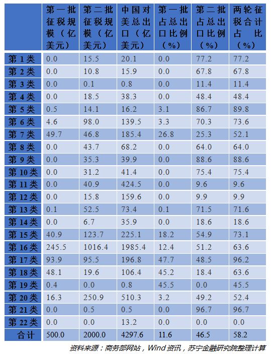 到了第二轮征税,征税规模从500亿美元新增2000亿美元,征税范围显著扩大。