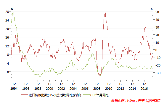 历史数据表明,美国国内通胀率与进口商品价格指数高度相关。