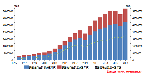 首先,加征关税将对中美双边贸易产生一定冲击。2017年,中美双边贸易额达到历史新高5837亿美元,其中中国对美出口4298亿美元,自美进口1539亿美元。