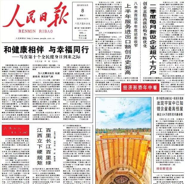 8月8日《人民日报》头版截图