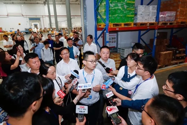 采访团成员走进鄂州葛店开发区,在苏宁华中物流产业中心采访