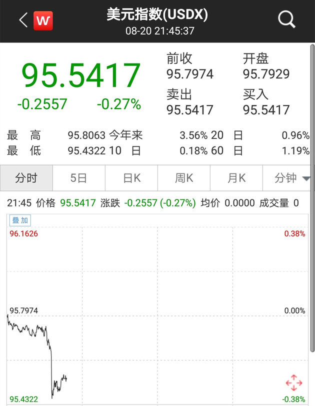 受特朗普炮轰美联储政策的消息影响,美元指数周一跌破96,周二亚市早盘进一步走低,截至发稿时,美元指数在95.54附近徘徊。