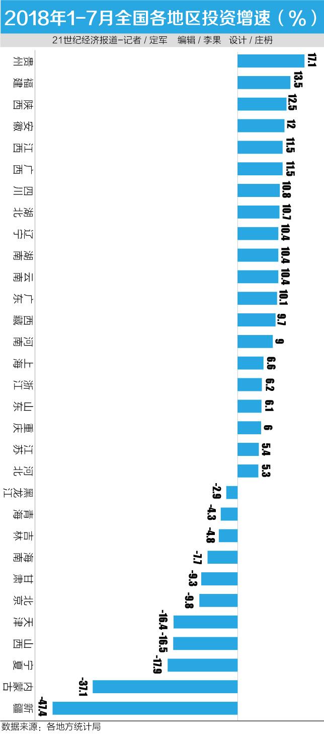 截至目前,各地方统计局已经公布1-7月固定资产投资增速数据。21世纪经济报道记者注意到,中国南北固定资产投资格局呈现明显的差异,即南方地区普遍投资增长快,北方地区则普遍投资增速慢。