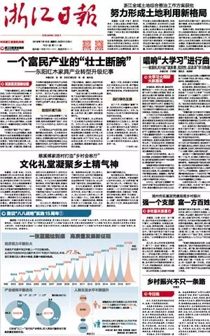 7月23日,《浙江日报》5版至8版刊登“文化篇”——《从加快建设文化大省到建设社会主义文化强国》。文中表示,浙江坚持不懈地加快推进文化大省建设,走出了一条富有成效的文化发展之路。浙江日报报业集团、浙江出版联合集团等国有文化企业在全国同行业发展中处于前列,影视动漫、新闻出版、数字阅读、文化用品制造、文化旅游等一批特色鲜明的优势文化产业发展迅速……