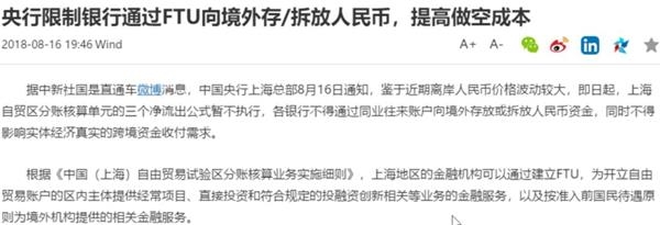 2018年8月3日,在央行宣布调整外汇风险准备金率时,再次提到“国际汇市变化等因素影响,外汇市场出现了一些顺周期波动的迹象”。