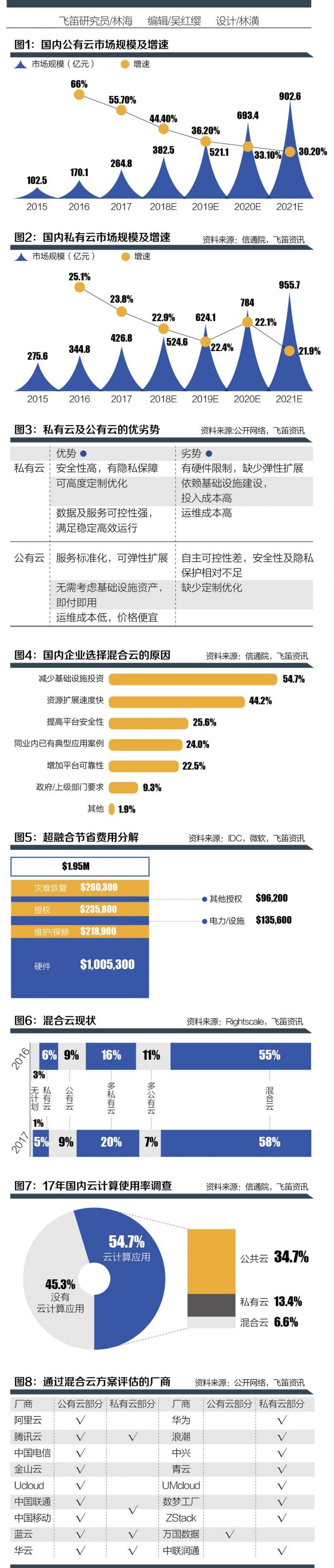混合云已成为各路厂商争夺的焦点,当前市面主流公有云及私有云厂商均通过混合云评估,从阿里腾讯等巨头最早2016年开始布局,截至2018年7月已有18家通过可信云混合云解决方案评估。近年来我国推出一系列加速云计算的政策,工信部当前提出力争2020年全国新增上云企业100万家,企业上云比例有望改善,包括混合云在内的云计算需求将进一步释放。(见图8)
