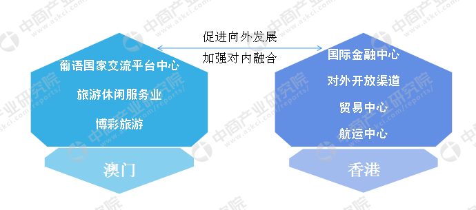而港澳地区在大湾区中起到促进向外发展、加强对内融合的作用。其中,澳门积极发展旅游休闲服务业、博彩旅游,同时也担任葡语国家交流平台中心的角色。香港作为全球金融中心之一,成为对外开放渠道,担任贸易中心、航运中心等角色。
