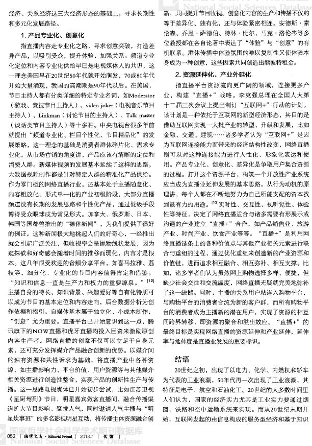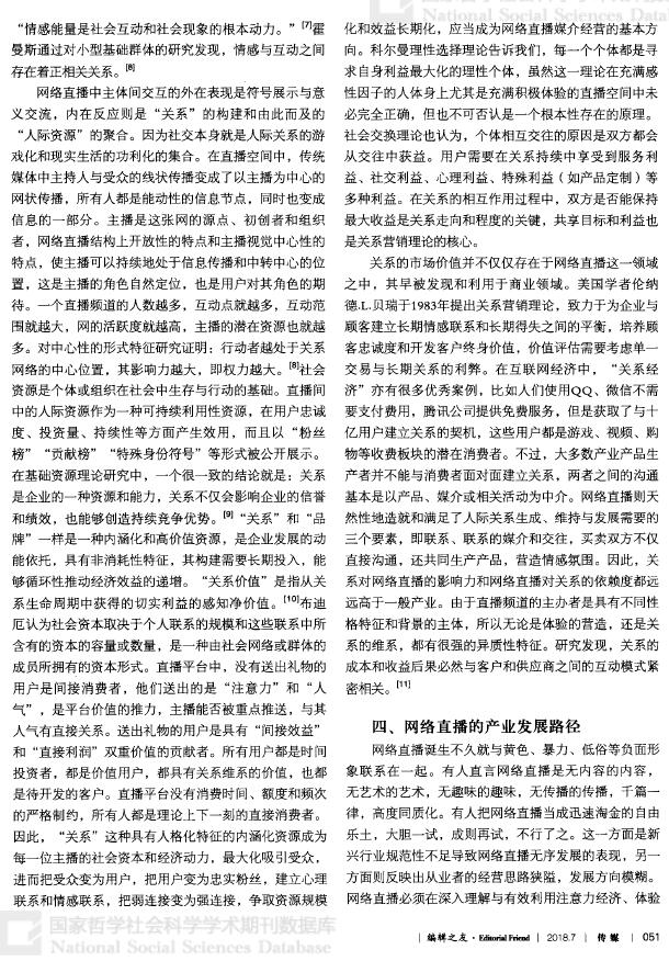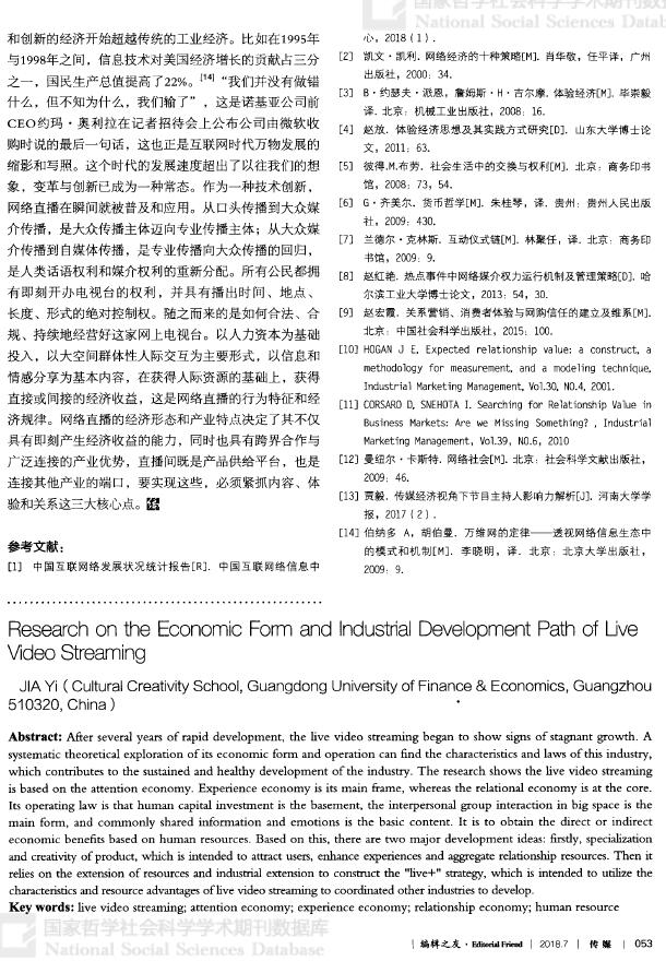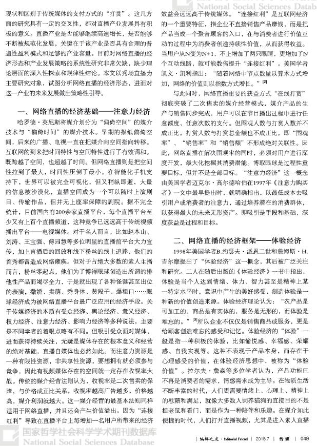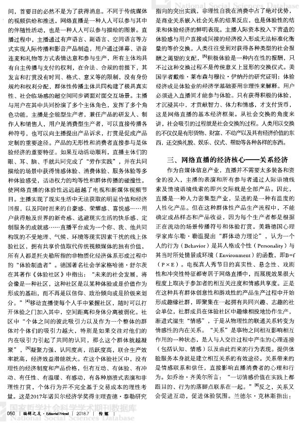 【关键词】网络直播 注意力经济 体验经济 关系经济 人际资源