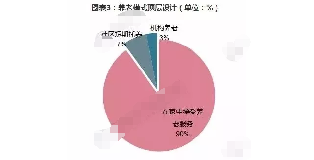 当前中国养老模式的顶层设计已经形成,即“9073”养老模式:90%的老年人在家中接受养老服务,7%为社区短期托养,3%为机构养老。