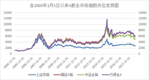 市场上已有具备一定影响力的A股全市场指数,如深交所信息公司编制的国证A指、wind资讯发布的万得全A和中证指数编制的中证全指。其中国证A指正式发布的时间最早(2005年2月3日),因此历史数据最全,它以市场实际可交易的自由流通市值加权计算,更加符合市场实际交易情况。
