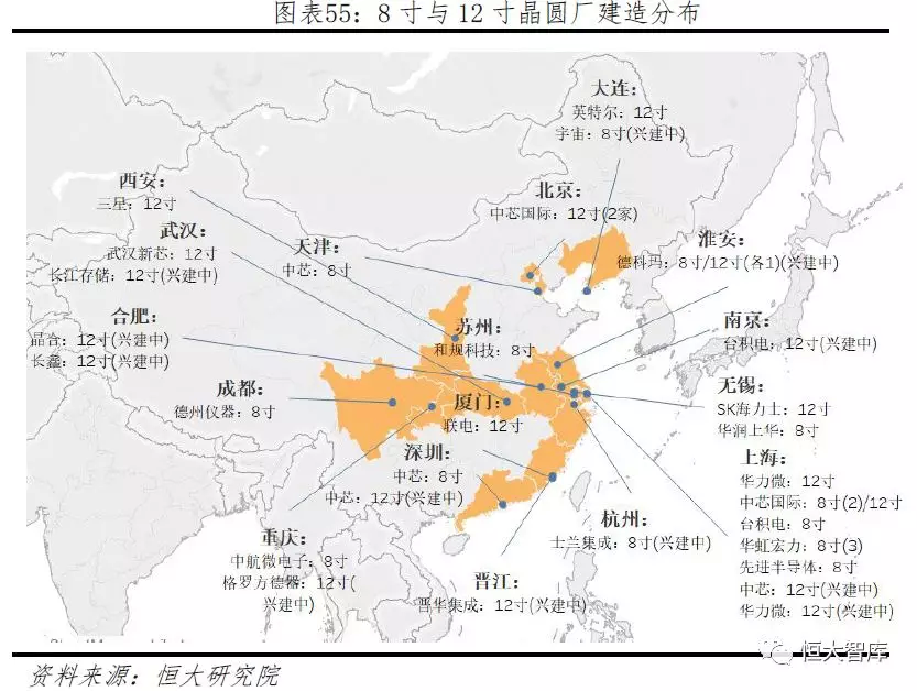 随着经济与政策、相对廉价劳动力支撑,目前半导体产业逐渐向中国转移。正如开篇分析,半导体行业与宏观经济的强相关性将逐渐加强,我国每年的约6%GDP增速、例如集成电路产业投资基金等扶持政策都是推动我国集成电路发展的重要力量。以晶圆厂为例,据不完全统计,至2022年,包括海内外厂商约30座晶圆厂将在我国落地,主要聚集在上海、江苏和安徽一带。