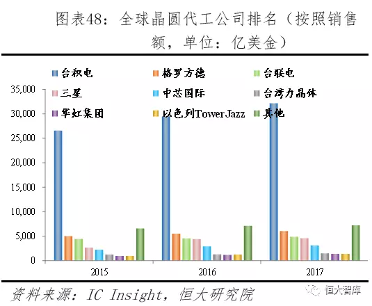 Bloomberg BusinessWeek曾这么形容台湾的半导体事业,“在全球半导体产业的地位无可取代,如同中东石油在全球经济的角色”。从时间来看,台湾与韩国大约同时发展,在80年代台积电首创Foundry模式后,以代工切入迅速攀升国际地位。随着产业发展与技术提升,90年代以晶圆代工为主逐渐完善上中下游产业链。据统计,2017年台湾IC产业总产值27623亿新台币(约898亿美金),IC制造占49.5%,其中88.15%为晶圆代工,占全球代工市场的76%。台湾半导体区别于韩国的崛起方式主要因为1)抓住行业需求积极参与全球化分工;2)新竹园区聚集效应与海外人才的回流;3)包括工研院建立的政府政策、战略规划。