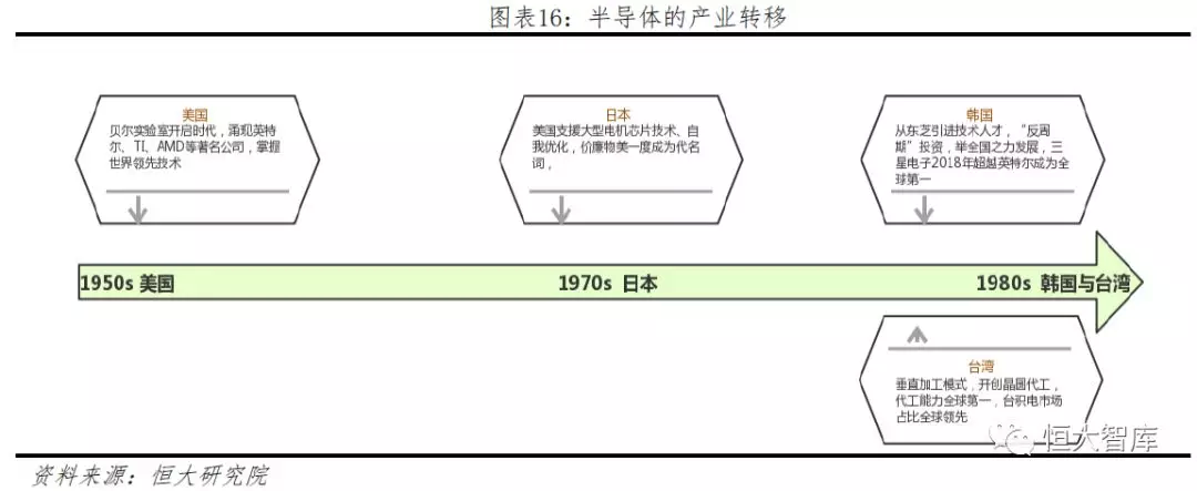 从历史进程看,全球范围完成两次明显的半导体产业转移:第一次,十九世纪70年代从美国转向日本,第二次从80年代转向韩国与中国台湾,目前逐渐转向中国大陆。是什么支持这些国家与地区半导体行业发展如此蓬勃?他们又是如何抓住机遇?