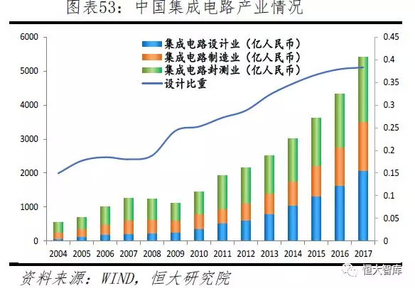 中国集成电路发展势头凶猛。据数据统计,2017年我国集成电路产业销售额达5411.3亿人民币,同比增长24.81%。从产业结构来看,设计、制造与封测三大产业增速均高于去年同期。设计业占比逐年攀升,产业结构从“大封测-中制造-小设计”到“大设计-中封测-中制造”转型,产业链逐渐从低端走向高端,展现我国集成电路发展的突破。