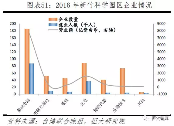目前,新竹园区共487家企业,半导体相关企业占64.27%,销售额占比高达90%以上,仅集成电路一项就支撑起台湾半导体产业销售额的31.25%,其重要程度不言而喻。