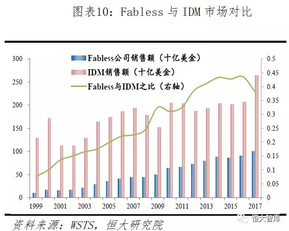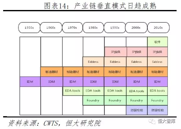 1)垂直模式日趋成熟,产业链更细化。细化分工的产业链除了降低投资风险、提高环节操作效率与最终产品良品率,更重要的是给新玩家一个进入行业的切入点,例如技术水平较低的封装检测、设计突出的Fabless等。对比早期IDM形式,各自环节深化有效降低资本支出在销售的比例,企业盈利得到一定保障。