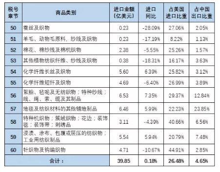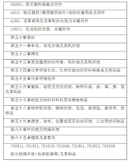 据中国纺织工业联合会初步整理,该清单中约有超过900个税号,927项纺织产品涵盖其中,涉及了HS50-60章的几乎所有产品。包括各种原料(棉、毛、丝、麻和化学纤维)的所有纱线、面料/织物,以及产业用纺织品和一部分纺织机械类产品,涉及的年对美出口金额约为40亿美元。此次清单不包括服装类产品和大部分家用纺织品。