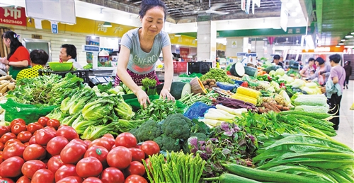9月10日,在南京一家农贸市场,一名商贩在整理蔬菜。 苏 阳摄(新华社发)