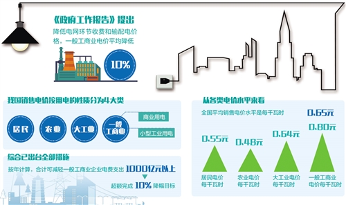 今年《政府工作报告》提出,“降低电网环节收费和输配电价格,一般工商业电价平均降低10%”。10%的降价空间从何而来?目前降价措施落实情况如何?政策红利如何传导到终端商业用户?针对这些热点问题,经济日报·中国经济网记者采访了相关部门和专家。
