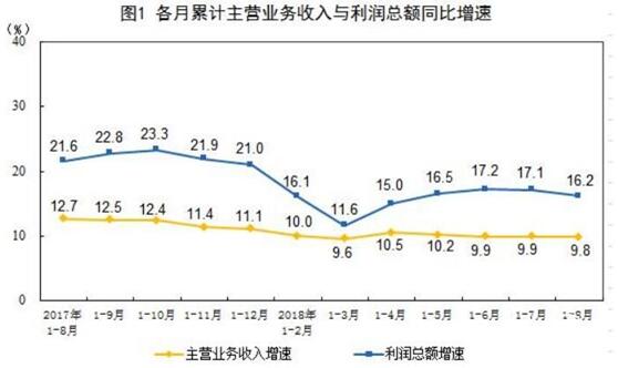 国家统计局9月27日发布消息,1-8月份,全国规模以上工业企业实现利润总额44248.7亿元,同比增长16.2%(按可比口径计算,考虑统计制度规定的口径调整、统计执法增强、剔除重复数据、企业改革剥离等因素影响),增速比1-7月份放缓0.9个百分点。