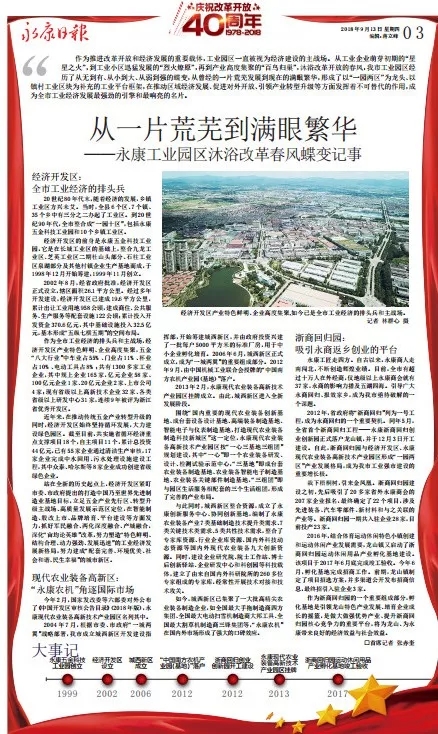 改革报道方式庆祝“改革”,以开放的姿态讴歌“开放”。和着举国庆祝改革开放40周年的宏大旋律,《永康日报》从三个“三”入手,谱写多声部、立体声的交响乐章。这组融媒体系列报道持续推出4个多月来,引起受众的强烈共鸣。