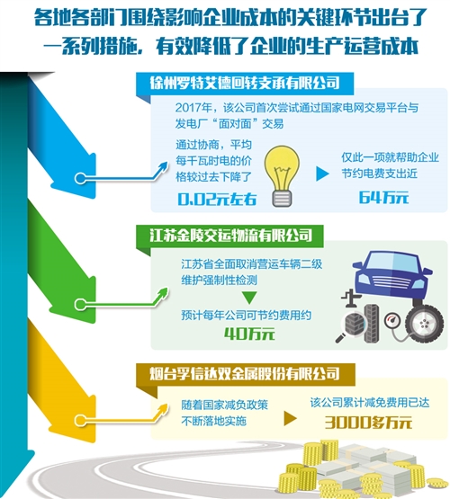 降成本是深入推进供给侧结构性改革、加快振兴实体经济的重要内容。近年来,为全方位降低企业运营成本,各地各部门围绕能源供应、物流、人力等企业运营关键环节,出台了一系列政策措施,有效降低了企业的生产运营成本。但值得注意的是,成本高、负担重等问题依然较为突出,“简政、减税、降费”等措施还需加快落地——