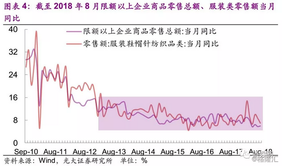 内需方面,近年来随着人力成本的上升以及国际贸易保护主义升温等原因,限额以上企业商品零售总额中服装类零售额增速较为平缓,但服装类零售增速快于整体增速。2018年8月份,整体零售额同比增加5%,服装类零售额同比增长7.0%。