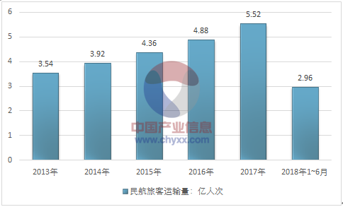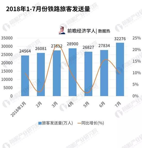 6.下图是2018年1-7月中国的铁路运量。七月单月突破3亿人次。2018年上半年中国民航业的总运输量是2.96亿人次。该数据波波已经在中国民航总局官网核对过,准确无误。