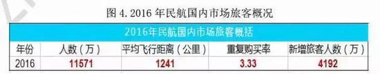 但是注意了,人次是具有迷惑性的数字。我们来看一个更精准的数字。下图是2016年的民航国内旅行者数据,2017年的找不到。2016年有1.1亿人坐过飞机,其中新增首次飞行旅客0.4亿。2016年的所有坐过飞机的人里,只0.76亿都是1-2次以内的。12次以上的旅客仅占坐过飞机的人的3.2%也就是说在全国人口中,仅占0.03%。这个数据我和航空系统的朋友核对过,放在今年依然准确。