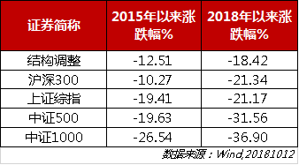 指数表现方面,2018年以来,沪深300指数(3107.840, -80.36, -2.52%)(3107.8402, -80.36, -2.52%)涨幅是-21.34%,上证综指涨幅-21.17%,中证500涨幅是-31.56%,而央企结构调整指数涨幅是-18.42%。
