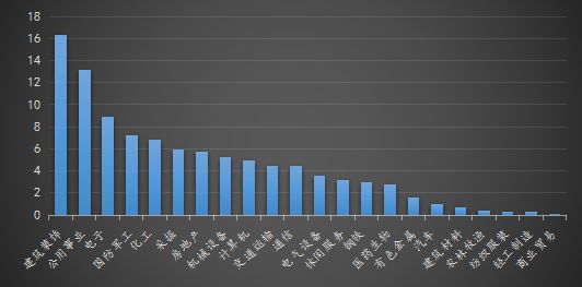 中证央企结构调整指数成分股的行业分布向国家重点战略、国民经济命脉和国计民生的行业集中,几乎囊括了发改委试点项目中所有的重要领域,完美契合央企结构调整的方向。