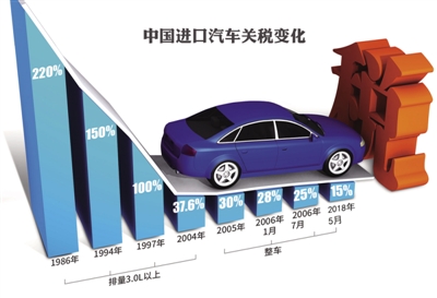 今年4月,中国宣布,将在5年内全面放开汽车行业外资股比限制;5月22日,中国对汽车进口关税税率进行了第十次下调,并最终锁定在15%的税率上。