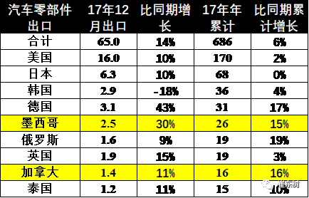 2、中国对墨西哥和加拿大的零部件出口有压力