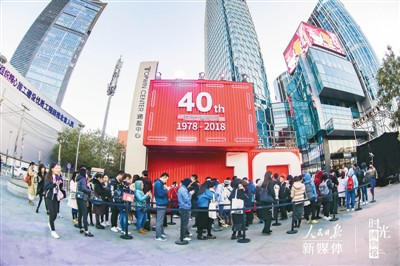 10月26日,由人民日报新媒体中心发起的致敬改革开放40周年创意体验馆——“时光博物馆”空降北京三里屯。自开馆首日起,这个通体红色的创意快闪展馆,便被众多慕名而来的游客所包围。其中既有青春正好的男女,也不乏银发老人和稚嫩孩童。他们有人一大早从其他城市赶来,也有人顶风冒寒在展馆外等了四五个小时,只为在此开启一场跨越40年的“穿越”之旅。