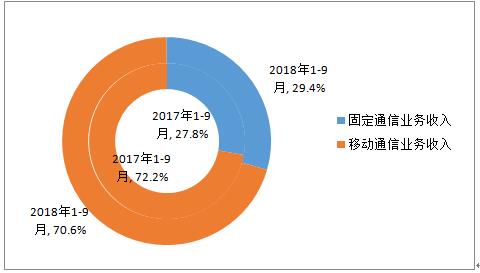 图2 2018年前三季度固定和移动业务收入占比情况