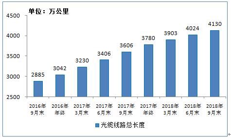 图11 2016年9月末-2018年9月末光缆线路总长度发展情况