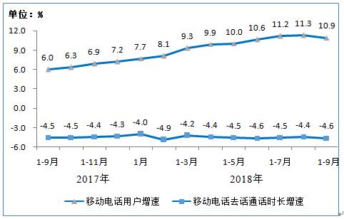移动电话通话量持续下降。前三季度,全国移动电话去话通话时长完成19281亿分钟,同比下降4.6%;全国固定本地电话通话时长完成935亿分钟,同比下降20%。