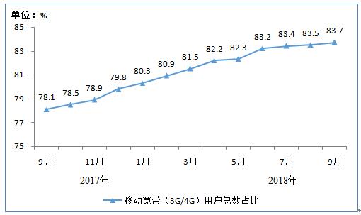 图3 2017年9月末-2018年9月末移动宽带用户总数占比情况