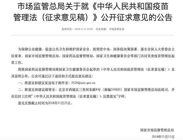 三部委称,为回应人民群众关切,全面贯彻习近平总书记关于食品药品“四个最严”的要求,落实党中央、国务院关于强化疫苗管理改革举措,将分散在多部法律法规中的疫苗研制、生产、流通、预防接种、异常反应监测、保障措施、监督管理、法律责任等规定进行全链条统筹整合,系统谋划思考,提升法律层级,强化法律措施,增强疫苗立法的针对性、实效性和可操作性,有必要制定专门的疫苗管理法。