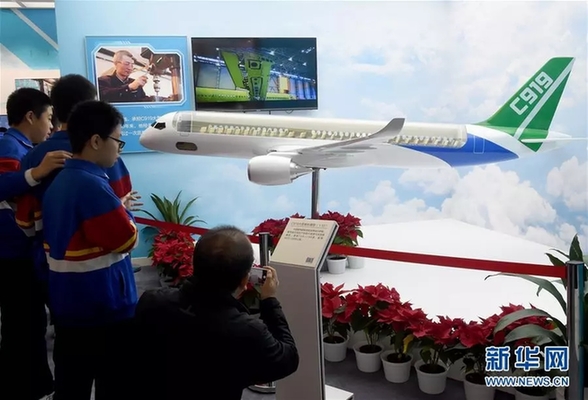 11月14日,观众在观看C919大型客机模型。新华社记者 罗晓光 摄