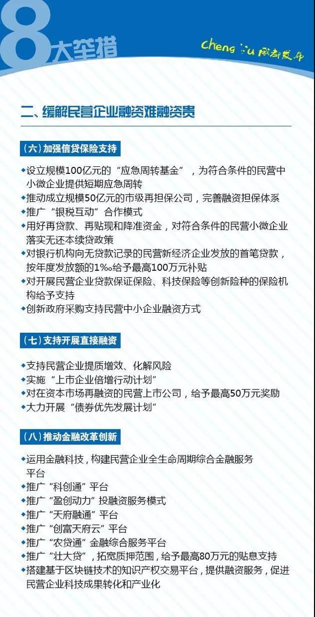 支持开展直接融资。设立100亿元上市公司纾困帮扶基金、20亿元知识产权运营基金、20亿元四板基金和10亿元天使投资基金,支持民营企业提质增效、化解风险。实施“上市企业倍增行动计划”,对在天府(四川)联合股权交易中心挂牌并完成股份制改造的民营企业给予20万元奖励,对在新三板挂牌的给予最高50万元奖励,对上市申请被中国证监会正式受理的给予100万元奖励,对首发上市的按融资额的1%给予最高350万元奖励。对在资本市场再融资的民营上市公司,给予最高50万元奖励。对新迁入我市的上市公司,一次性给予350万元奖励。大力开展“债券优先发展计划”,对通过发行公司债、企业债、中期票据、短期融资券等方式融资的民营企业,单户企业最高奖励100万元。促进民营企业债券融资支持工具落地。