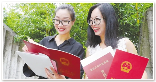 浙江德清农村宅基地“三权分置”改革试点,莫干山镇塔莎杜朵精品民宿主人领到了房屋产权证书。 (资料图片)