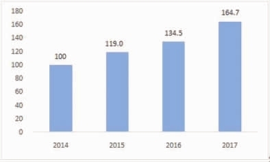 报告分析认为,手机行业产品和企业竞争力提升,企业效益明显改善。国产品牌手机高端机型出货量增长较快,平均价格较上年提升近300元,促进企业效益的提升。手机龙头企业国际竞争力持续提升,出货量居前三位的华为、OPPO和小米全球市场份额占比较上年提升4.4个百分点。二是手机企业创新活跃。根据世界知识产权报告数据,从1990~2013年,手机行业的专利占所有申请专利数的30%~35%。作为全球手机产业主要生产制造基地,我国手机企业创新活跃,研发强度连续三年提升,2017年已超过3.5%。