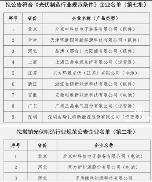 据工信部网站消息,工信部今日起公示第七批符合《光伏制造行业规范条件》企业名单,9家企业拟列入。巨力新能源股份有限公司等23家已公告企业,因不能保持规范条件要求,拟撤销其规范条件企业名单。