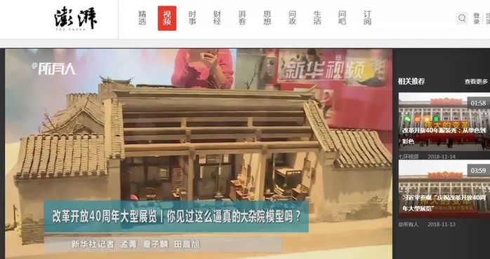 浏览澎湃新闻的改革开放40周年相关报道,其网站分别以《改革开放40年•大型展览》《改革开放40年•光辉历程》《改革开放40年•动态要闻》为系列对改革开放40周年进行刻画描写。在《改革开放40年•大型展览》专题中,澎湃新闻刊登了《改革开放40周年展品故事:重温陈云对纪检队伍的严格要求》等独具特色的文章。