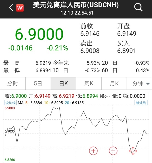 受此消息影响,离岸人民币升破6.9关口,较昨日收盘涨约150点。美股期货也快速飙升。
