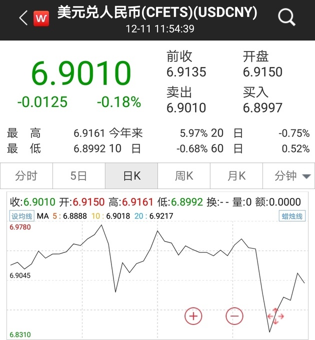 在岸人民币也一度收复6.9关口。在岸人民币兑美元今日开盘微涨15个基点,报6.9150,早盘时段一度升破6.90关口,截止发稿时报6.9010。