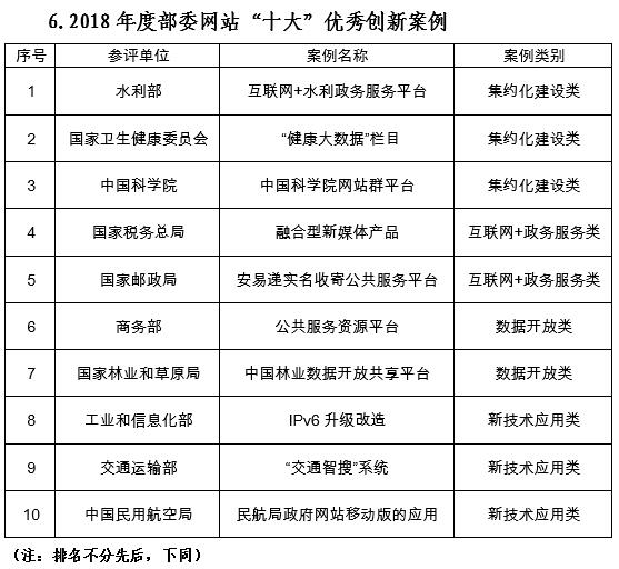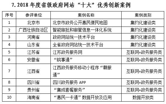 2018年,中国软件评测中心对937家政府网站进行了综合评估,包括64家部委、32家省级、334家地级以上城市政府网站,以及507家副省级城市、省会城市下辖的、自愿报名参评的区县级政府网站。